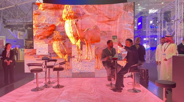 本次展会上,新亚胜光电展位的吊装区+舞美租赁展示区的组合令人眼前一亮,吊装区采用王牌产品MG7S系列搭建而成,整屏尺寸为6*3m,极具创意的沙特简称“KSA”造型,在展馆内十分亮眼夺目。