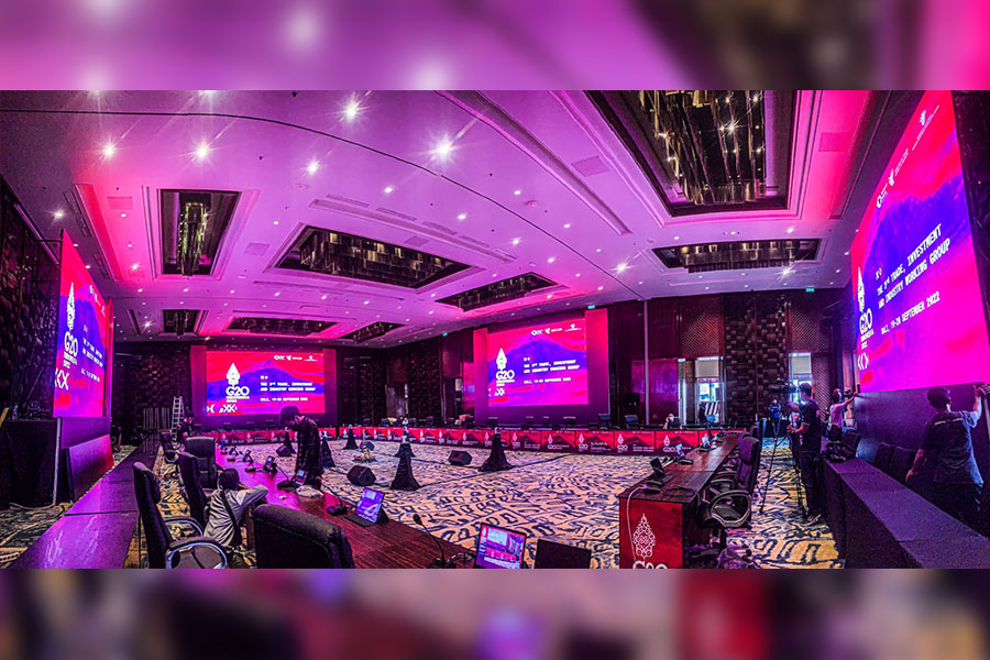 1月15日至16日,二十国集团领导人第十七次峰会在旅游胜地印度尼西亚巴厘岛盛大举行。在本届峰会上,湖南企业新亚胜光电凭借众多国际盛会经验、过硬的产品品质及服务,为多个主题活动提供近500平米LED显示屏及一体化解决方案。 在贸易、投资和工业工作组会议,金融科技讲座等会议场景中,新亚胜光电出品的LED显示屏同样出彩,它以卓越的显示效果及高度的稳定性能向与会人员展示主题背景、会场议程、现场直播、远程连接等内容画面,彰显了中国显示科技的实力,大放中国光彩。印尼G20数字创新网络颁奖环节上,舞台主屏呈现高清细腻的画面,对比强烈的色彩强势吸睛,将印尼文化多元性的特色表现得淋漓尽致。在印尼G20中央银行服务节上,创意造型与LED显示屏的完美融合为宴会现场增添极简科技感。